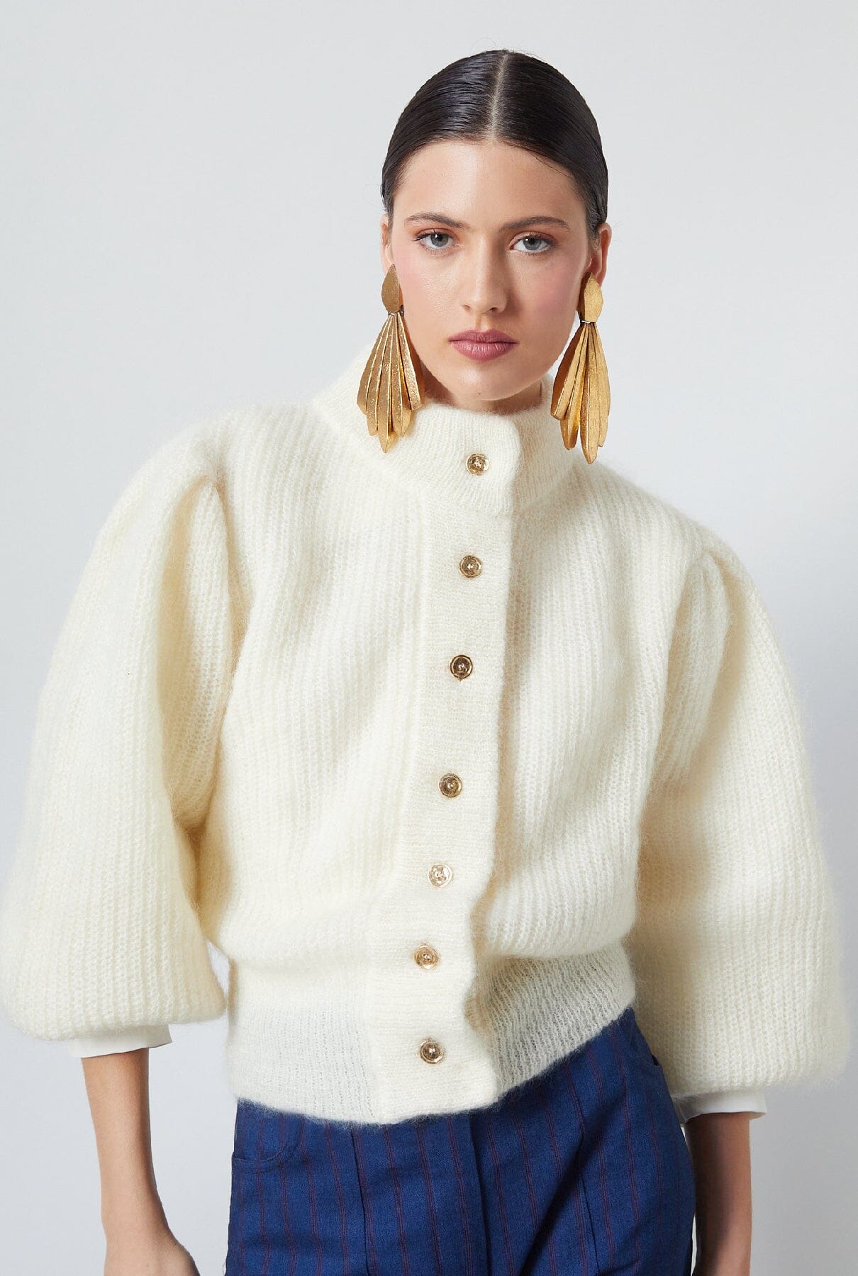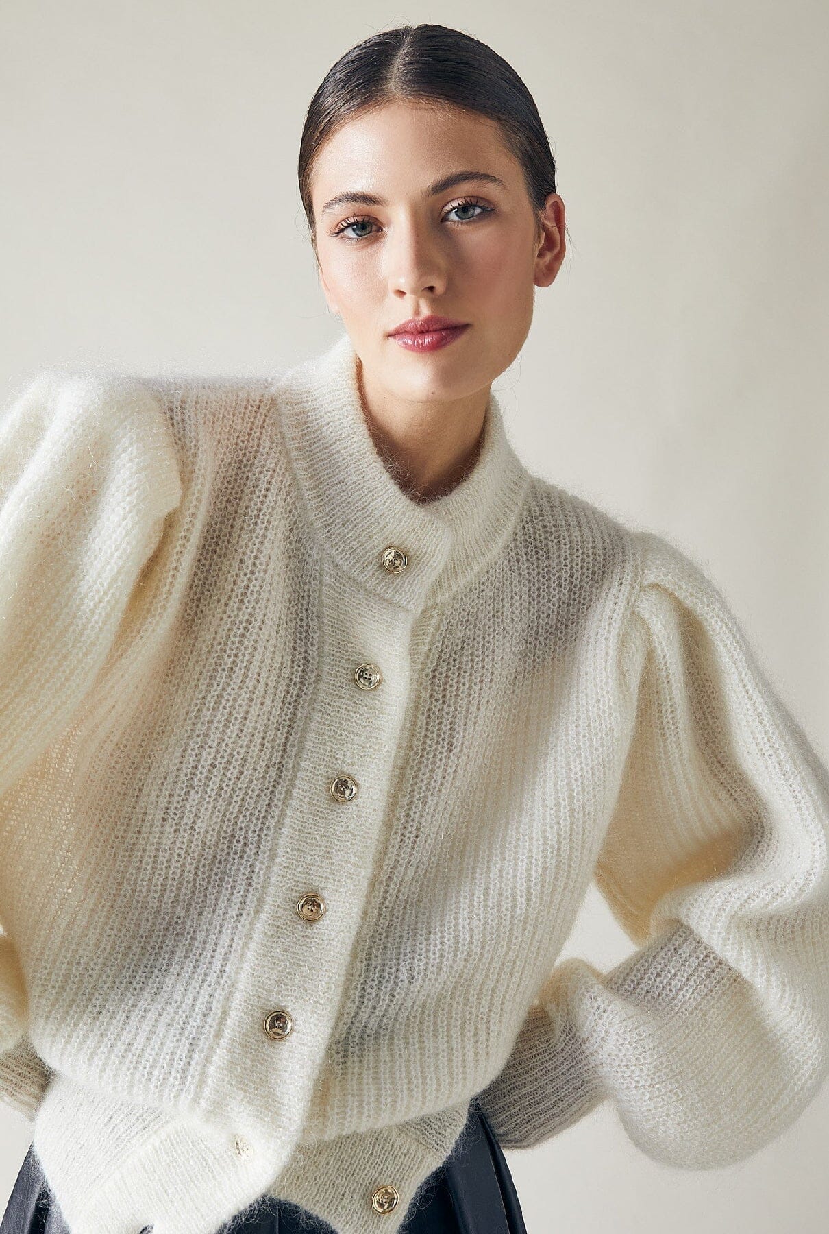 Una prenda de punto esencial para tu guardarropa esta temporada. Con mangas largas abullonadas y un llamativo par de botones dorados, este cárdigan blanco roto te mantendrá abrigada y cómoda durante toda la temporada.