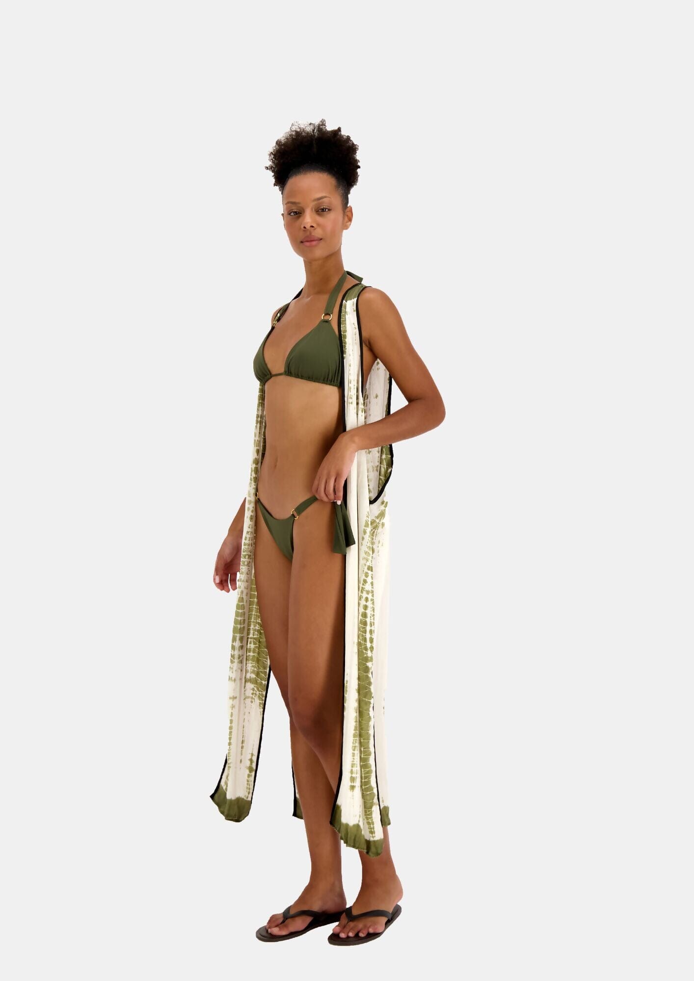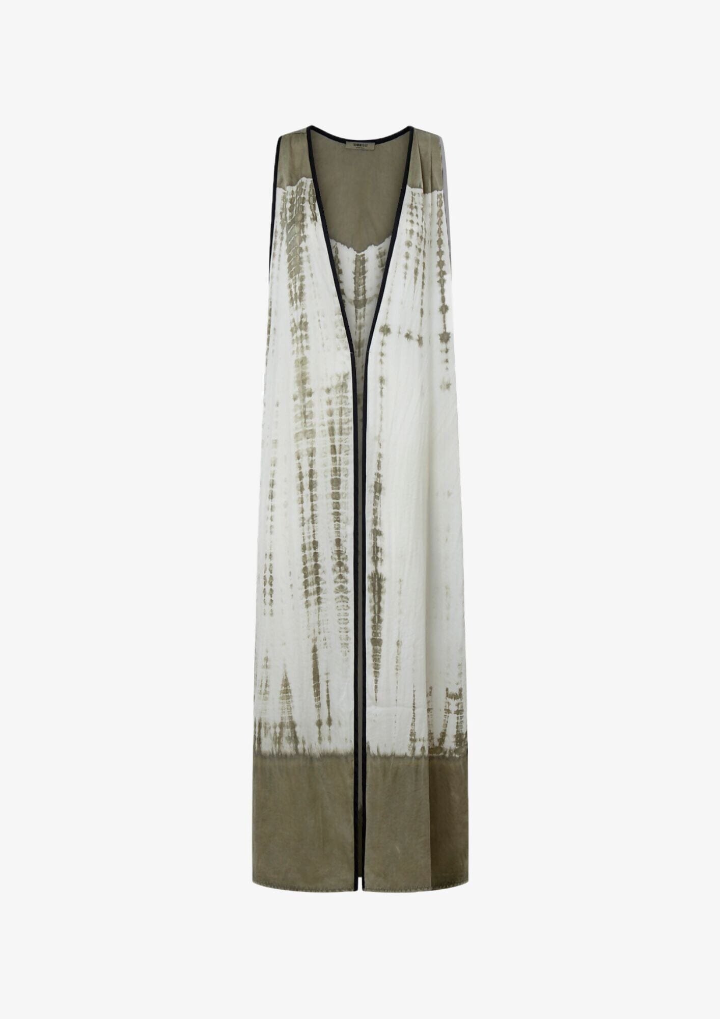 Chaleco largo de verano con estampado tie-dye en color verde.