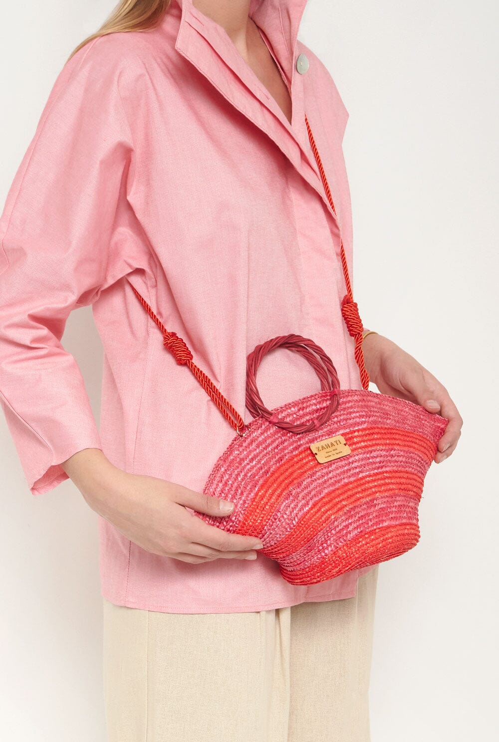 Mini hatbag en rosa y rojo. Un bolso muy lindo que se puede usar en cualquier lugar, eventos especiales y para uso diario. Diseñado por Zahati.