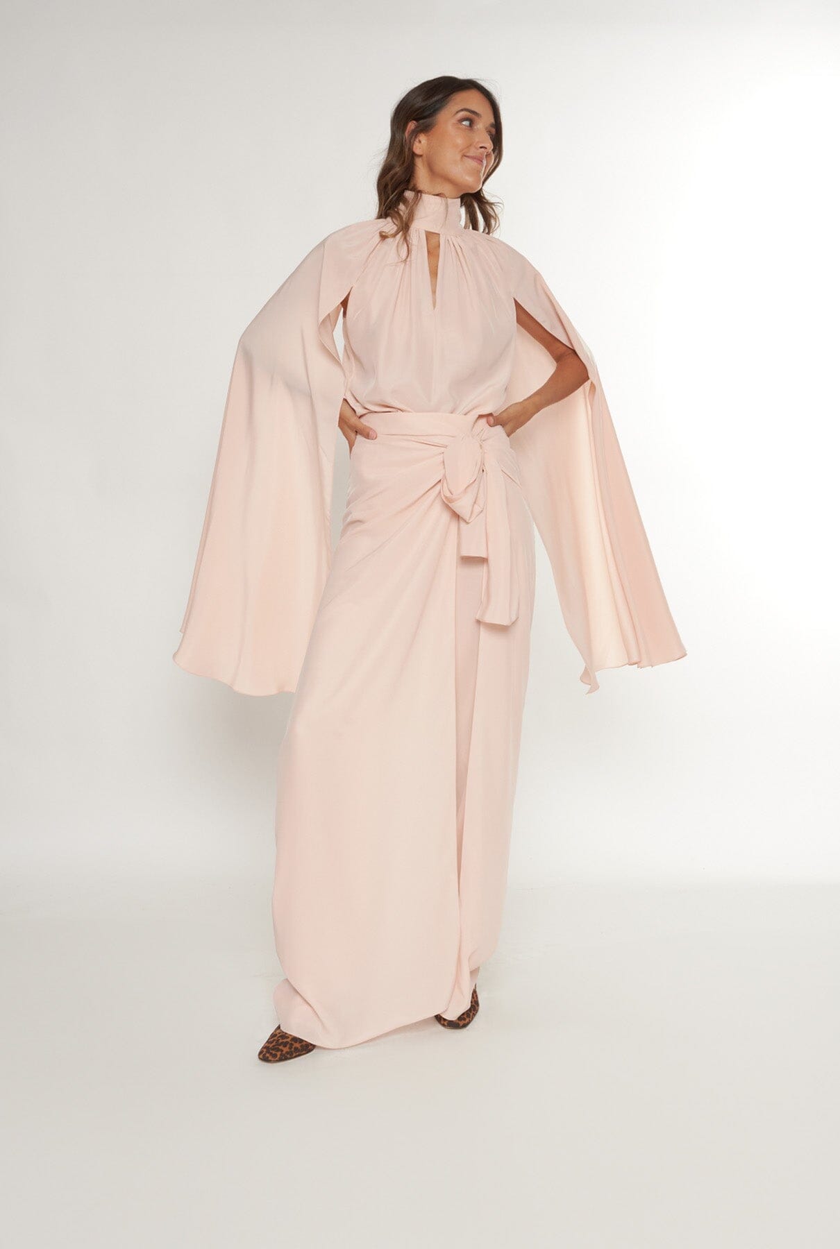 Pantalón de crepe ligero, recto hasta el suelo, con falda cruzada.