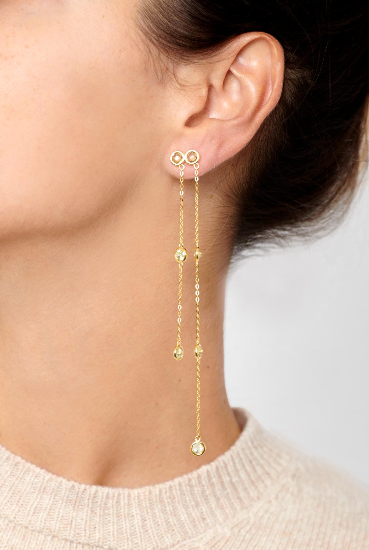 Duda recurrente: que no te confundan sus dos circonitas en la parte superior, para llevar estos pendientes solo necesitas tener un agujero en cada oreja.