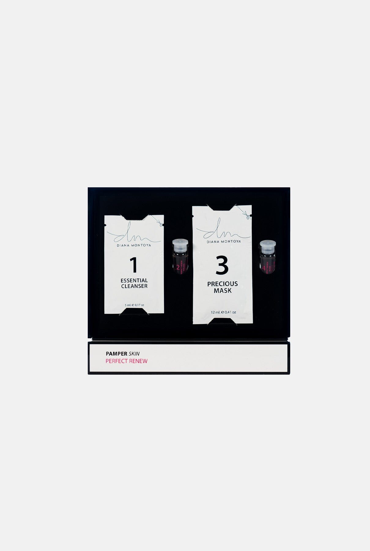 Una vez aplicado el peeling y sin retirarlo, extender una capa densa de precious mask sobre rostro, cuello y escote. Dejar actuar el paso 1 y el paso 2 entre 15 y 20 minutos. No más de 20 minutos de exposición. Pasado el tiempo de exposición, realizar un suave masaje y retirar con ayuda de esponjas o toalla húmeda.