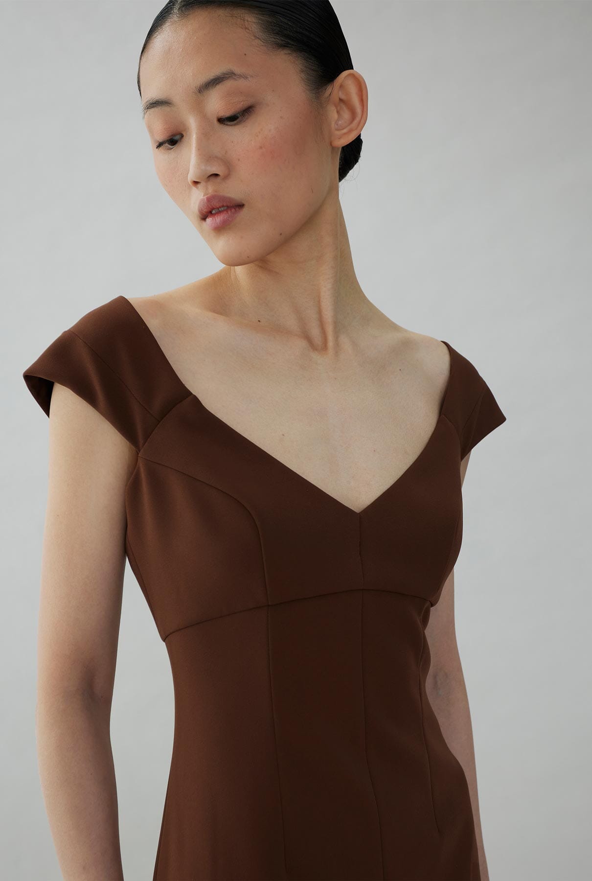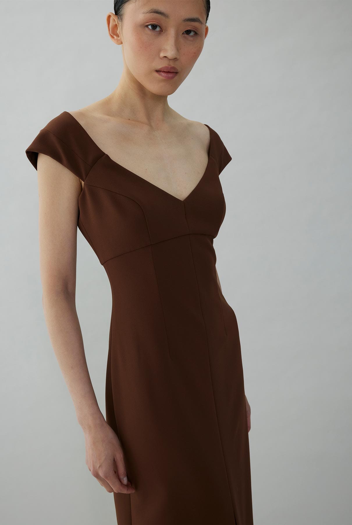 Elegante vestido de algodón con líneas limpias y detalles sutiles, ideal para ocasiones especiales.
