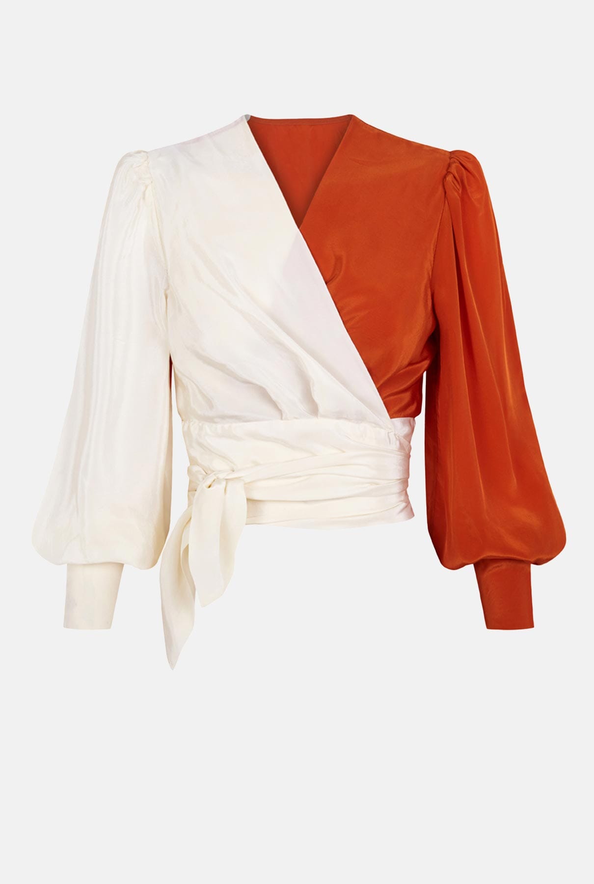 Camisa cruzada con escote en V y mangas largas con puños. Confeccionada en tejido mixto. Cierre frontal con lazo.